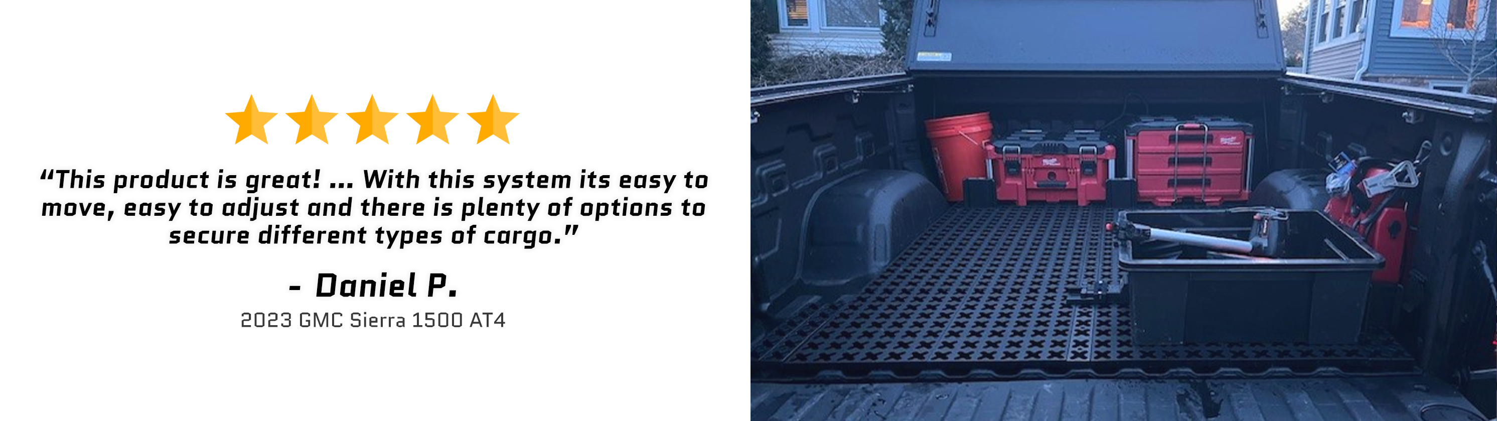 Optimize your Tesla Cybertruck’s bed with a cargo management system built for adaptable truck bed organization. Adjustable blockers plug into the mat in any configuration, creating compartments for tools, gear, and equipment. Designed to fit between the wheel wells, it slides out to the tailgate for quick, easy access. Compatible with drawer systems, bed slides, and other custom setups.