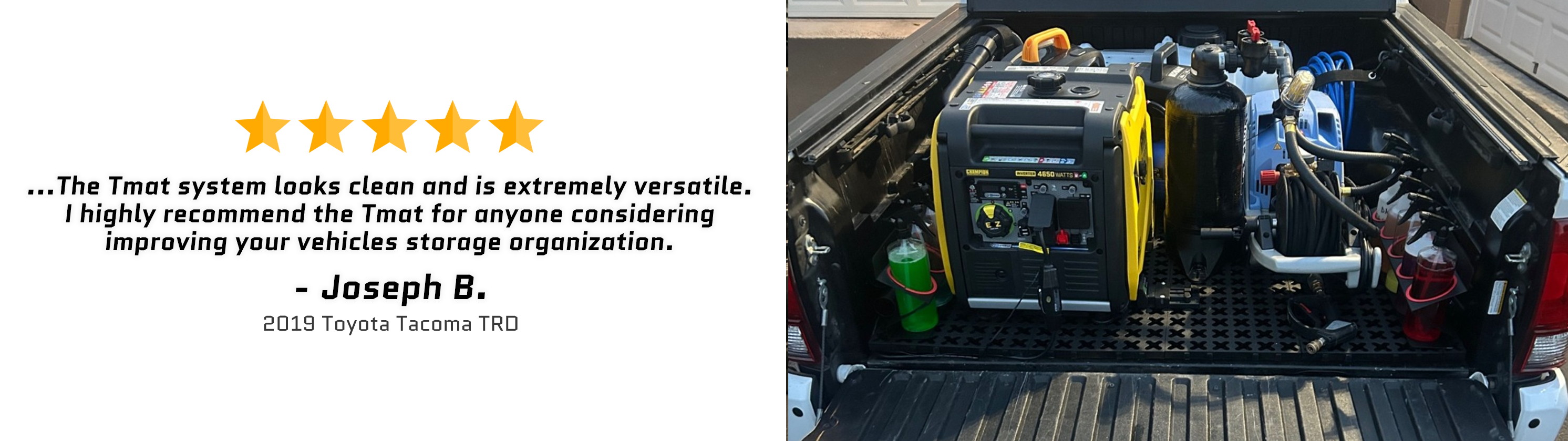 Tmat can be assembled and installed in under 5 minutes. No drilling or modifying your vehicle.