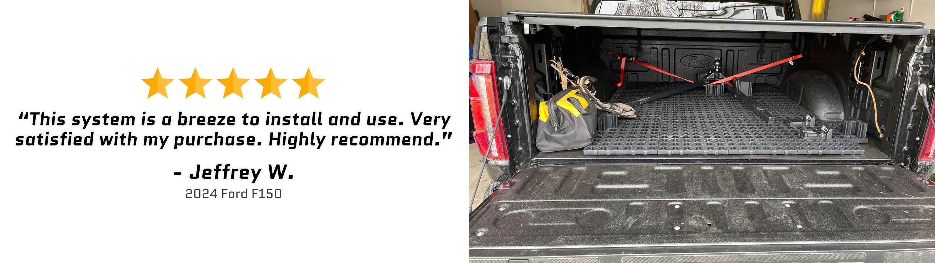 Upgrade your Ford F-150’s truck bed organization with this cargo management system. Adjustable blockers fit into the mat in any configuration, giving you the flexibility to arrange tools, gear, and equipment your way. Designed to fit between the wheel wells, it slides out to the tailgate for quick access. Works with drawer systems, bed slides, and other custom installs.