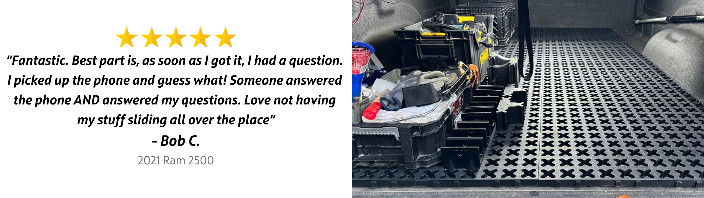 Expand your cargo management. Install Tmat and organize your trailer, van, utv bed, tac room - anywhere you work.