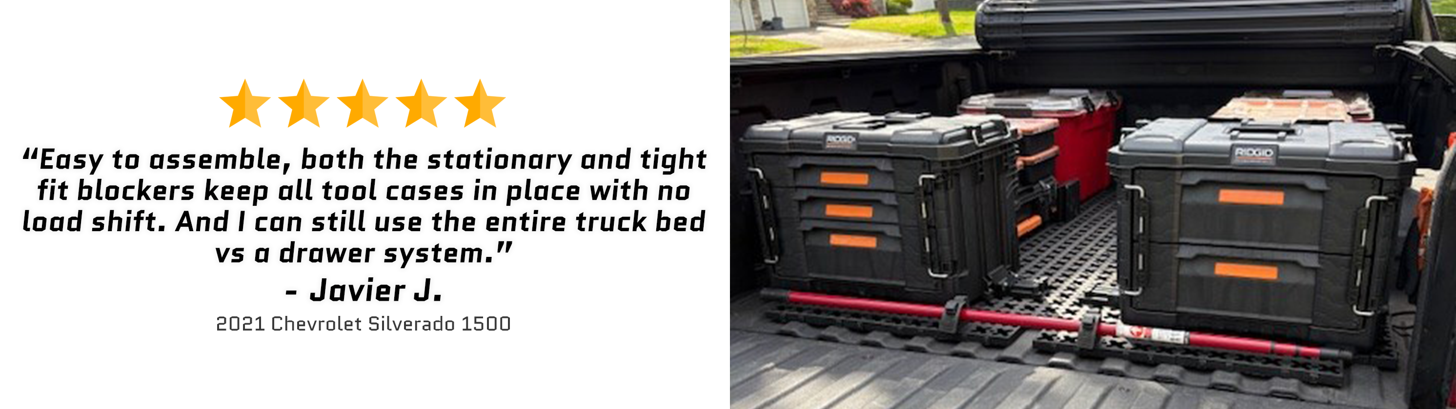Truck bed dividers just cut your bed in half. Tmat cargo blockers plug in and adjust to keep your tools and equipment in place.