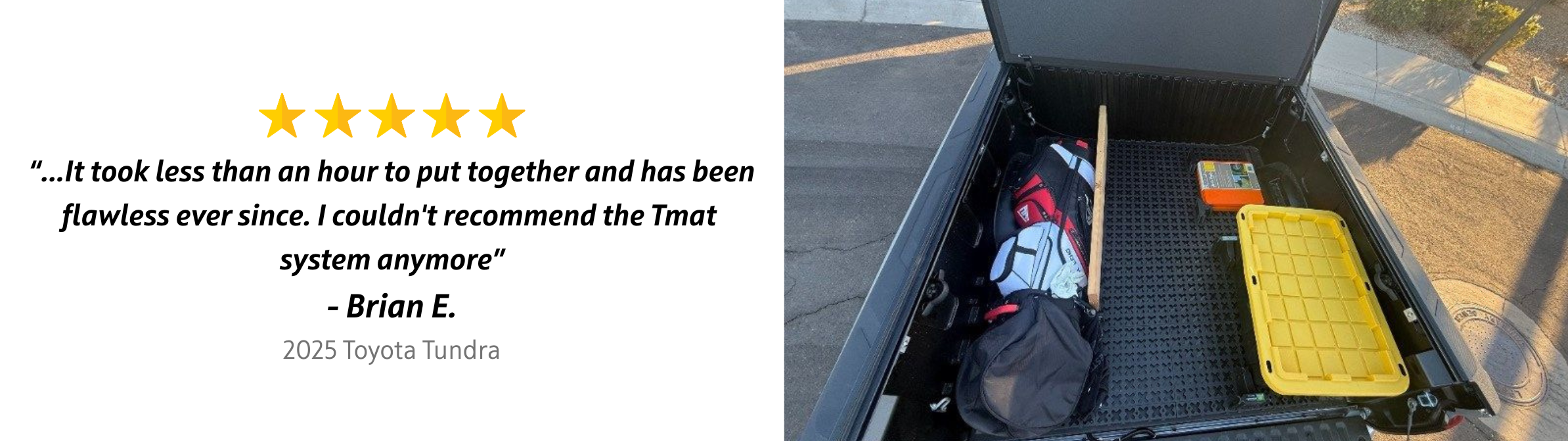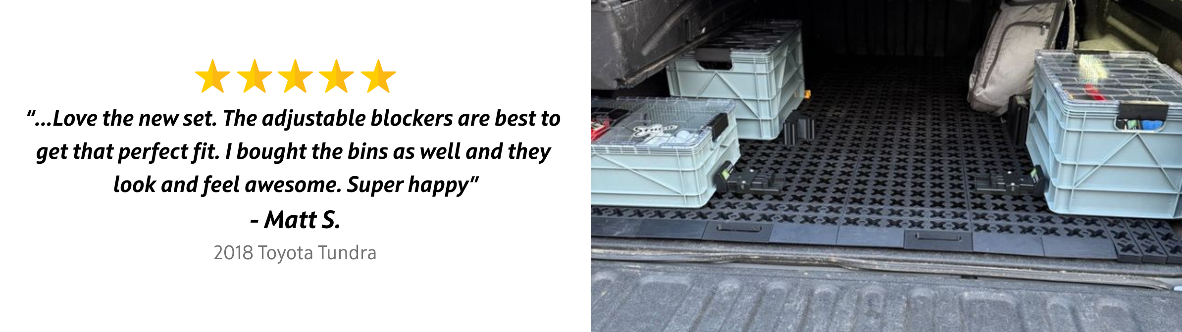 Equip your Toyota Tundra with a cargo management system built for adaptable truck bed organization. Adjustable blockers plug into the mat in any arrangement, creating compartments for tools, gear, and equipment. Designed to fit between the wheel wells, it slides out to the tailgate for fast access. Compatible with drawer systems, bed slides, and other custom setups.
